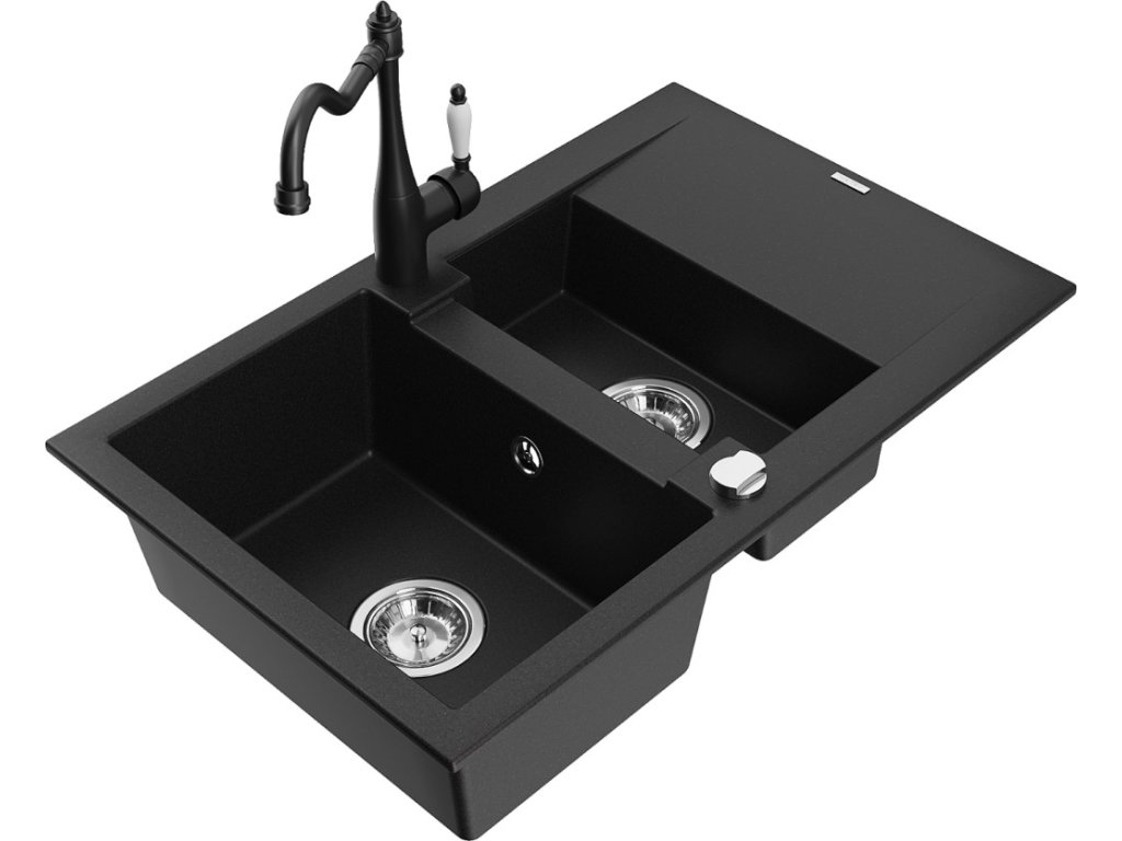 MEXEN/S - Gaspar granitový dřez 1.5 s odkapávačem včetně baterie Carla, černá 6507-77-670700-00