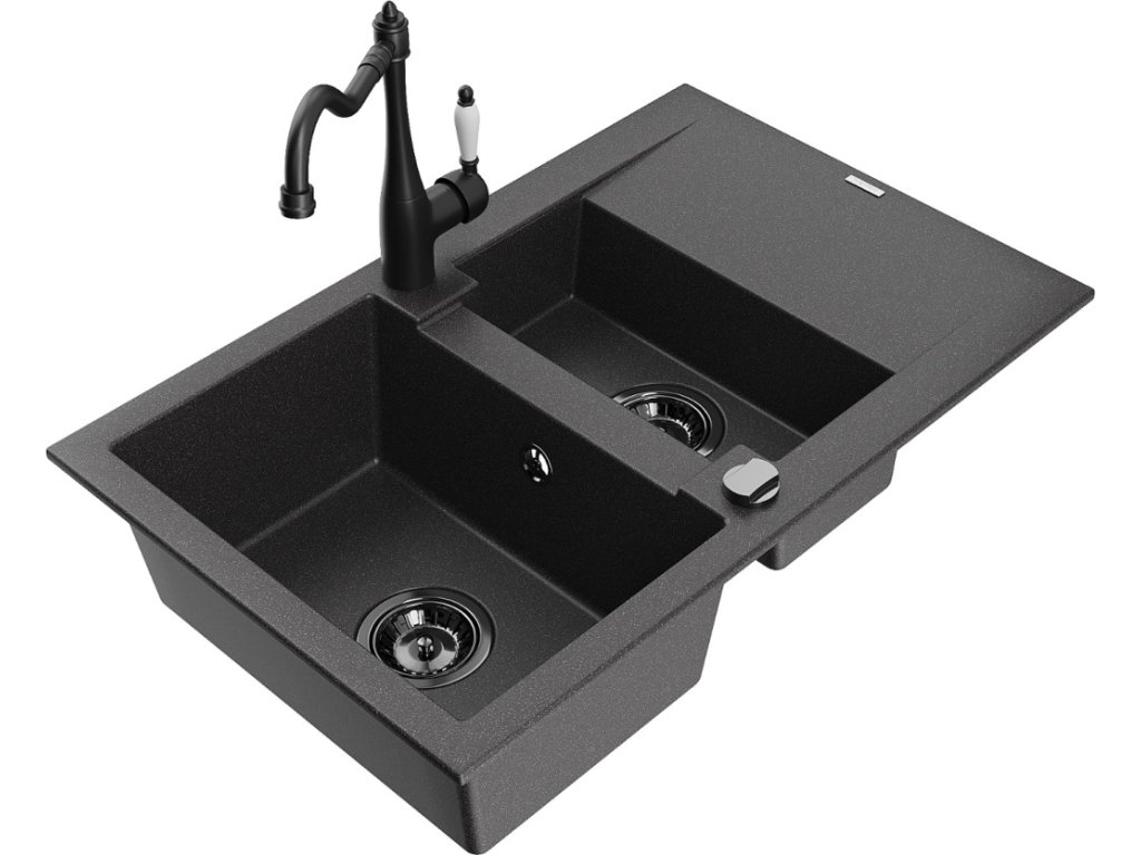 Granitový vestavný dřez s odkapem 77x44 cm v černé barvě kombinuje moderní design a vysokou odolnost. Vyroben z kvalitního granitového kompozitu, který odolává poškrábání,...