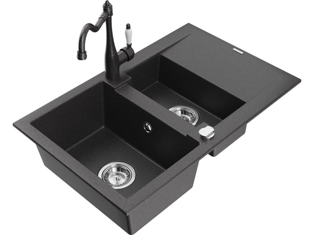 Granitový vestavný dřez s odkapem 77x44 cm v černé barvě kombinuje moderní design a vysokou odolnost. Vyroben z kvalitního granitového kompozitu, který odolává poškrábání,...