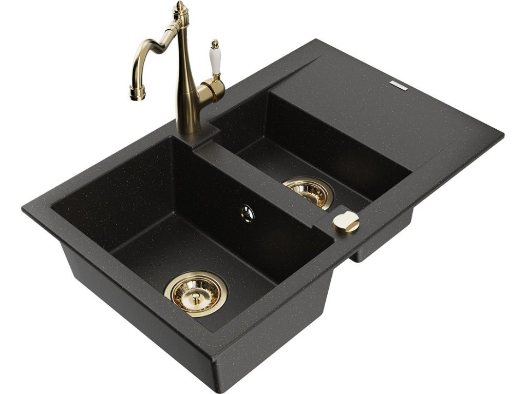 MEXEN/S - Gaspar granitový dřez 1.5 s odkapávačem včetně baterie Carla, černá/zlatá metalik 6507-75-670700-50 + slevový kód