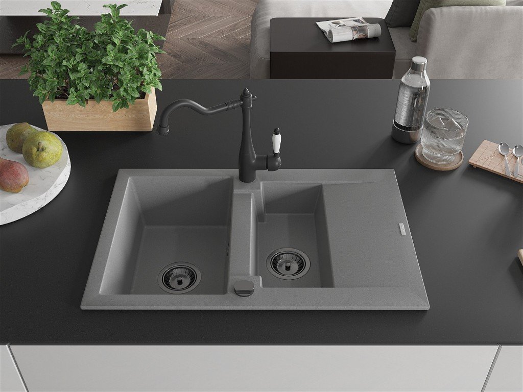 Granitový vestavný dřez s odkapem 77x44 cm v černé barvě kombinuje moderní design a vysokou odolnost. Vyroben z kvalitního granitového kompozitu, který odolává poškrábání,...