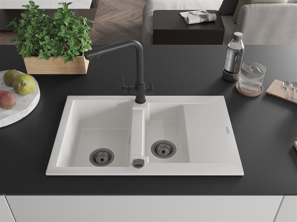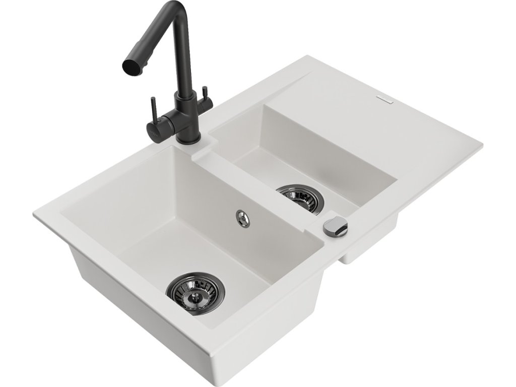 MEXEN/S - Gaspar granitový dřez 1.5 s odkapávačem včetně baterie Duero, bílá 6507-20-671600-70 + slevový kód