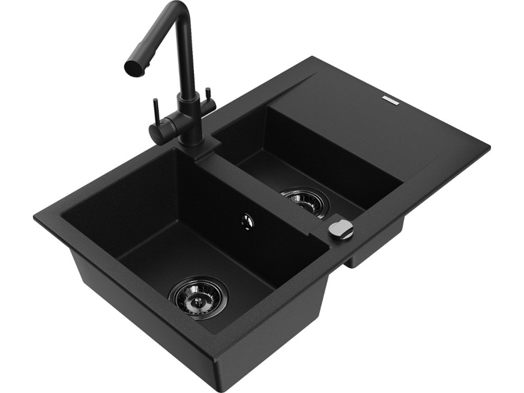 MEXEN/S - Gaspar granitový dřez 1.5 s odkapávačem včetně baterie Duero, černá 6507-77-671600-70-B