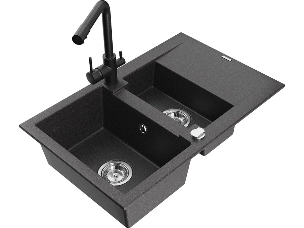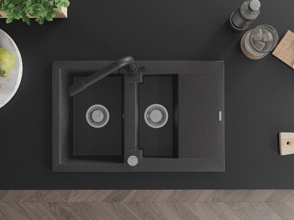 Granitový vestavný dřez s odkapem 77x44 cm v černé barvě kombinuje moderní design a vysokou odolnost. Vyroben z kvalitního granitového kompozitu, který odolává poškrábání,...