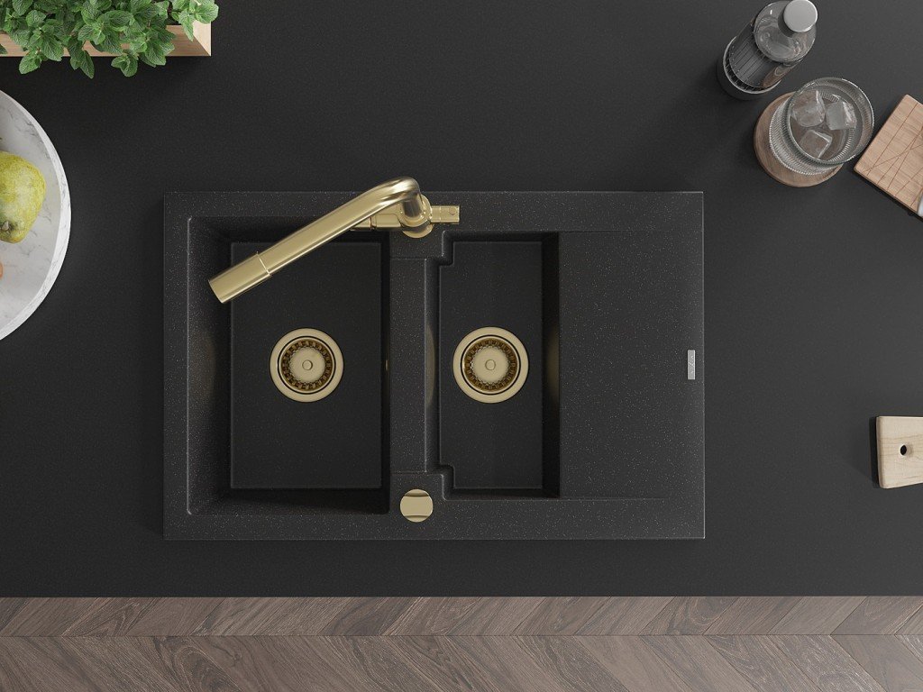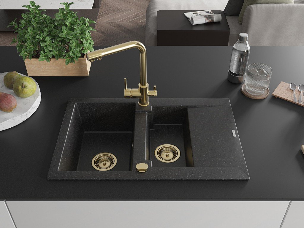 Granitový vestavný dřez s odkapem 77x44 cm v černé barvě kombinuje moderní design a vysokou odolnost. Vyroben z kvalitního granitového kompozitu, který odolává poškrábání,...