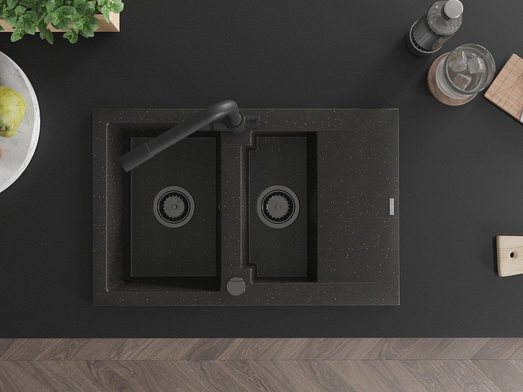 MEXEN/S - Gaspar granitový dřez 1.5 s odkapávačem včetně baterie Duero, černá/zlatá 6507-75-671600-70-B + slevový kód