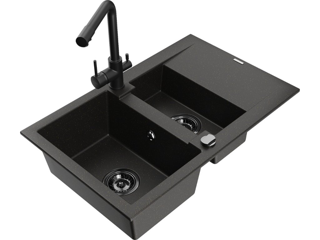 Granitový vestavný dřez s odkapem 77x44 cm v černé barvě kombinuje moderní design a vysokou odolnost. Vyroben z kvalitního granitového kompozitu, který odolává poškrábání,...