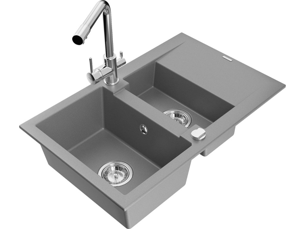 MEXEN/S - Gaspar granitový dřez 1.5 s odkapávačem včetně baterie Duero, šedá 6507-71-671600-00
