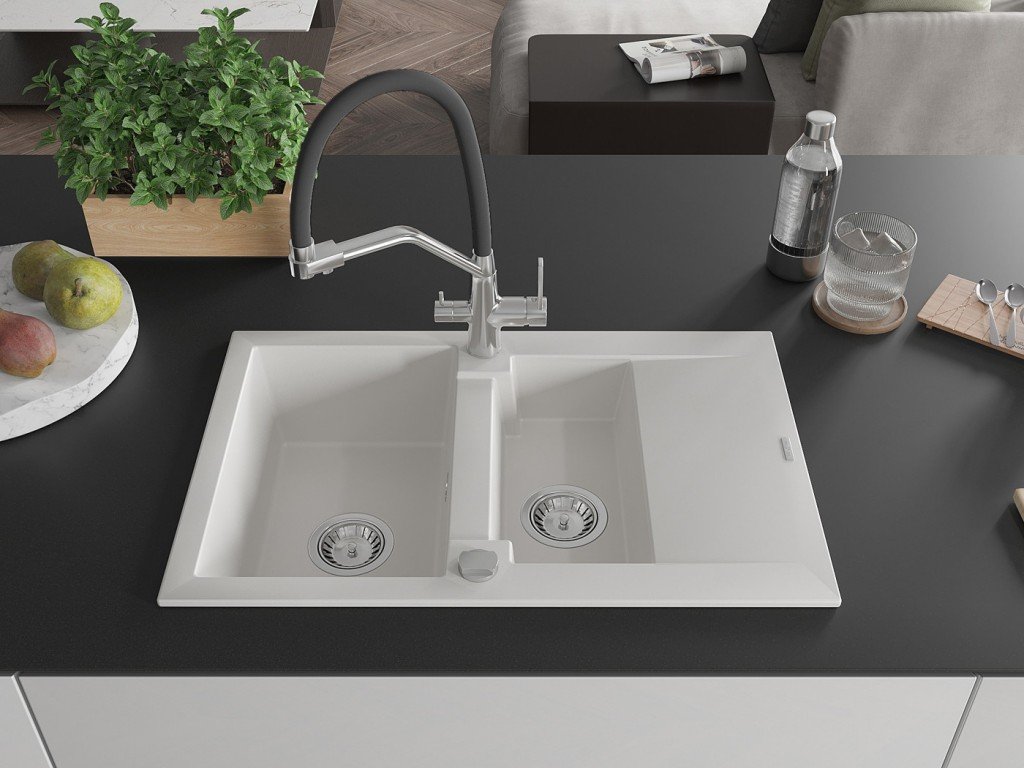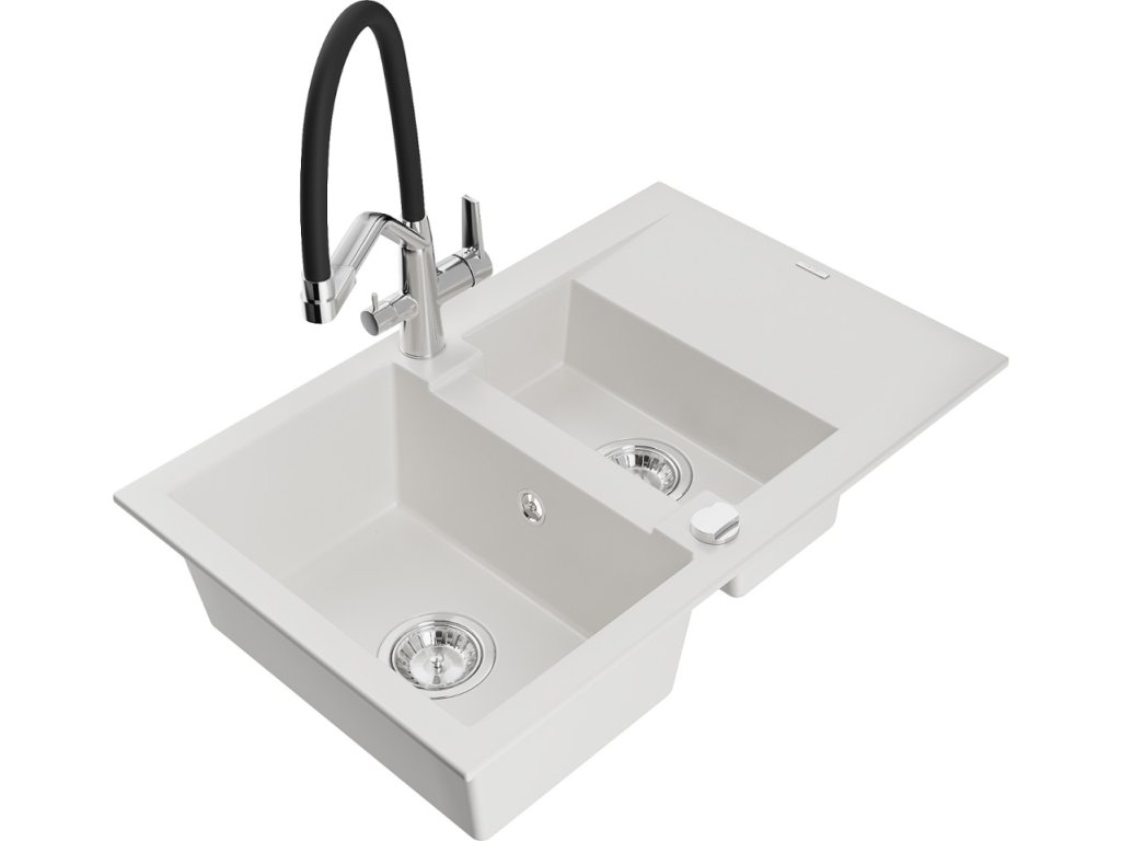 MEXEN/S - Gaspar granitový dřez 1.5 s odkapávačem včetně baterie Duo, bílá 6507-20-671701-07 + slevový kód