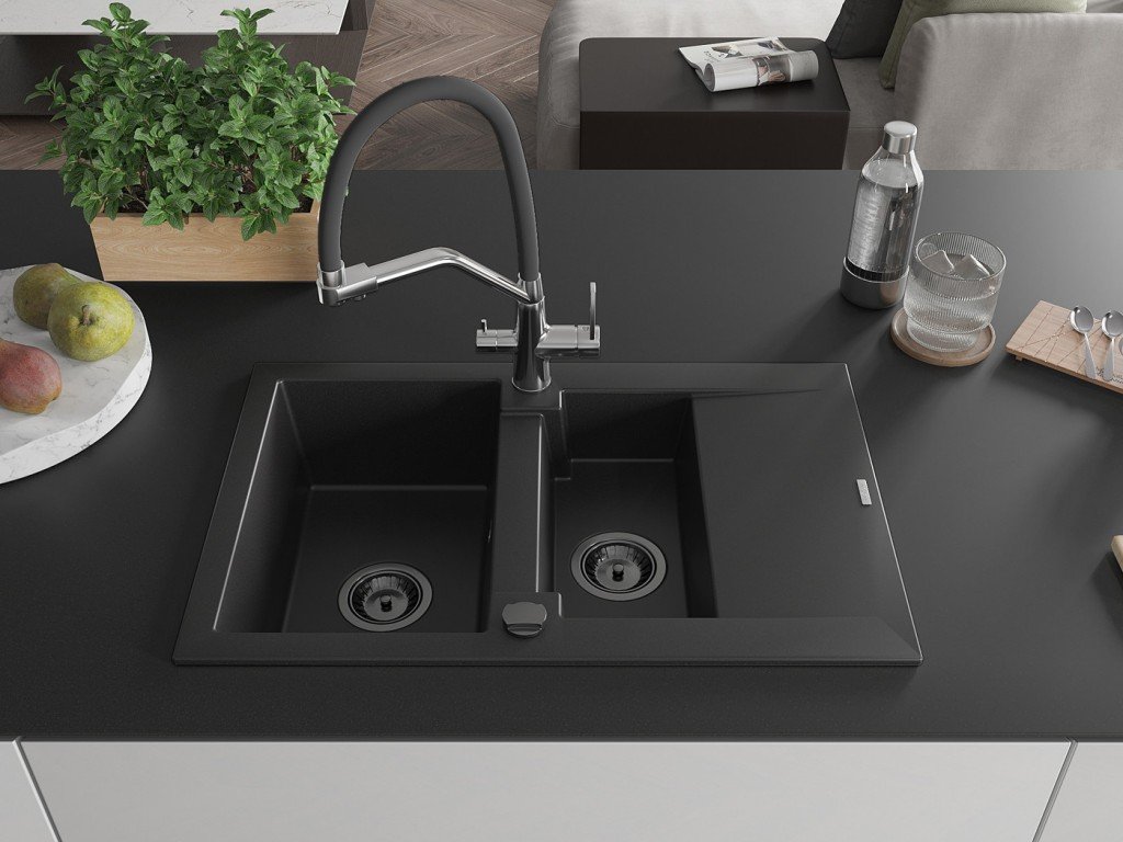 MEXEN/S - Gaspar granitový dřez 1.5 s odkapávačem včetně baterie Duo, černá 6507-77-671701-07-B