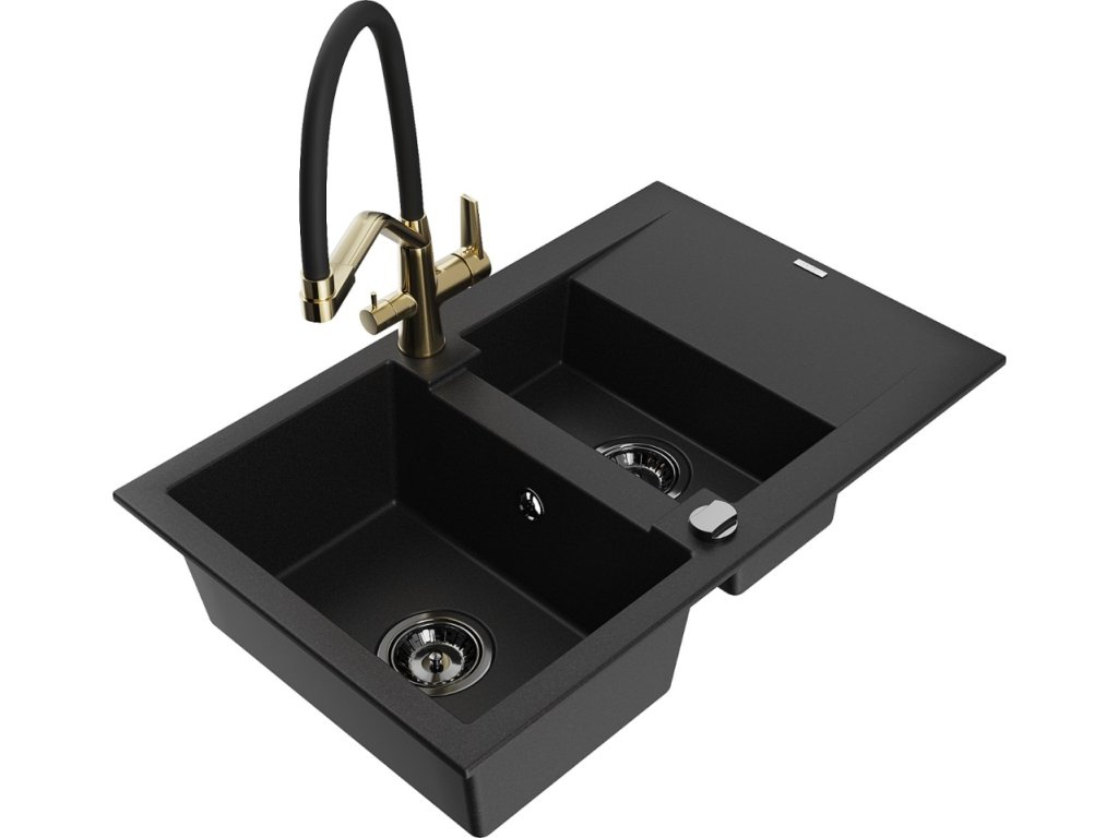 MEXEN/S - Gaspar granitový dřez 1.5 s odkapávačem včetně baterie Duo, černá 6507-77-671701-57-B