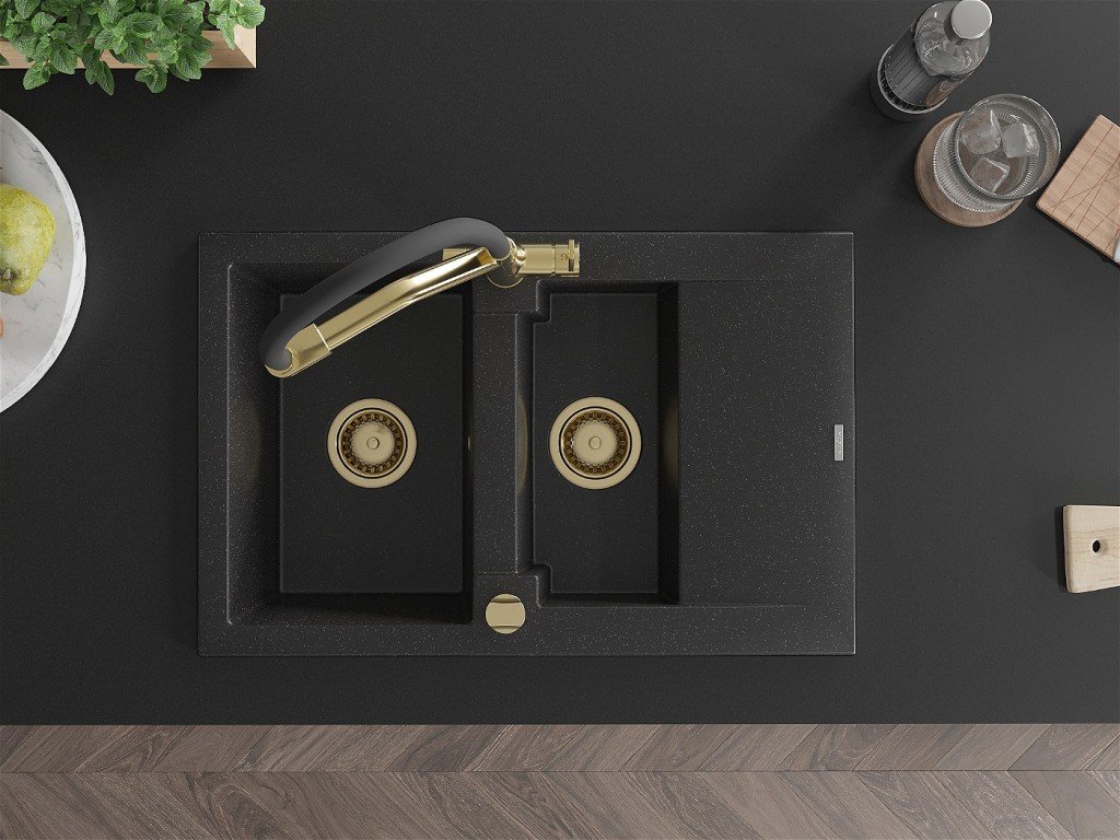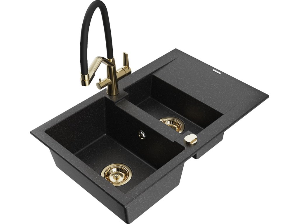 MEXEN/S - Gaspar granitový dřez 1.5 s odkapávačem včetně baterie Duo, černá/stříbrná 6507-73-671701-57-G + slevový kód