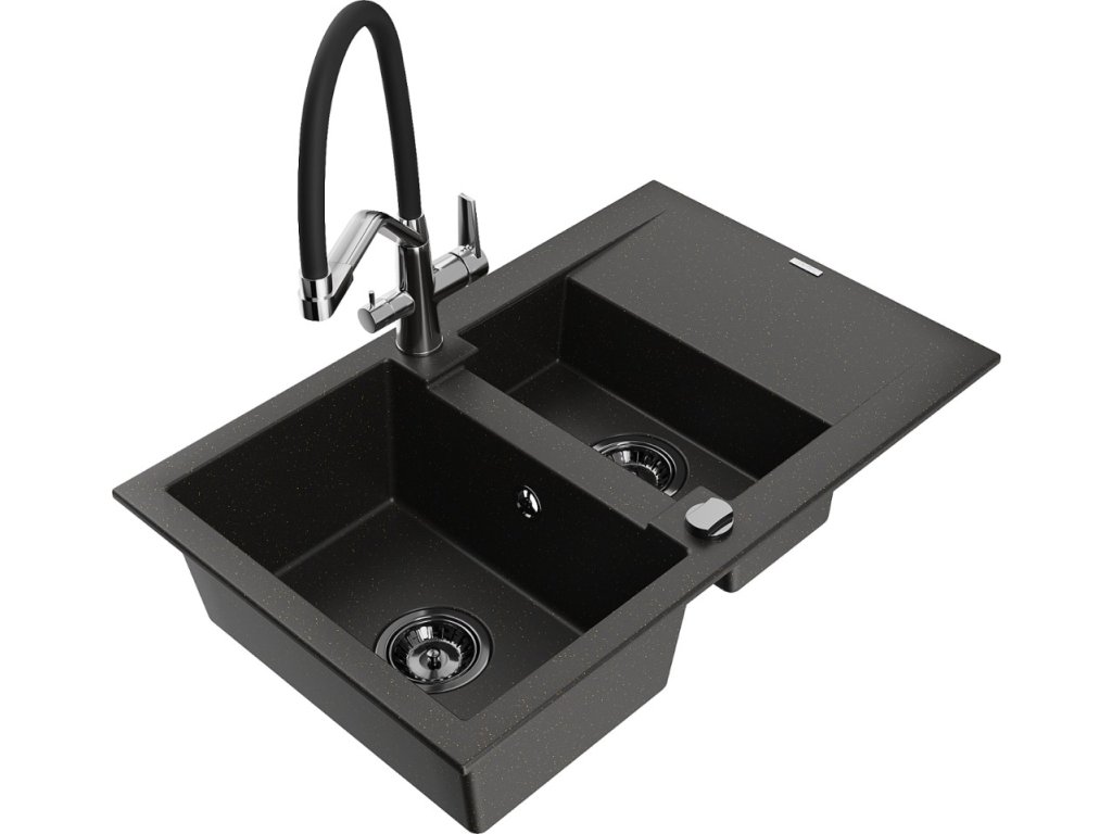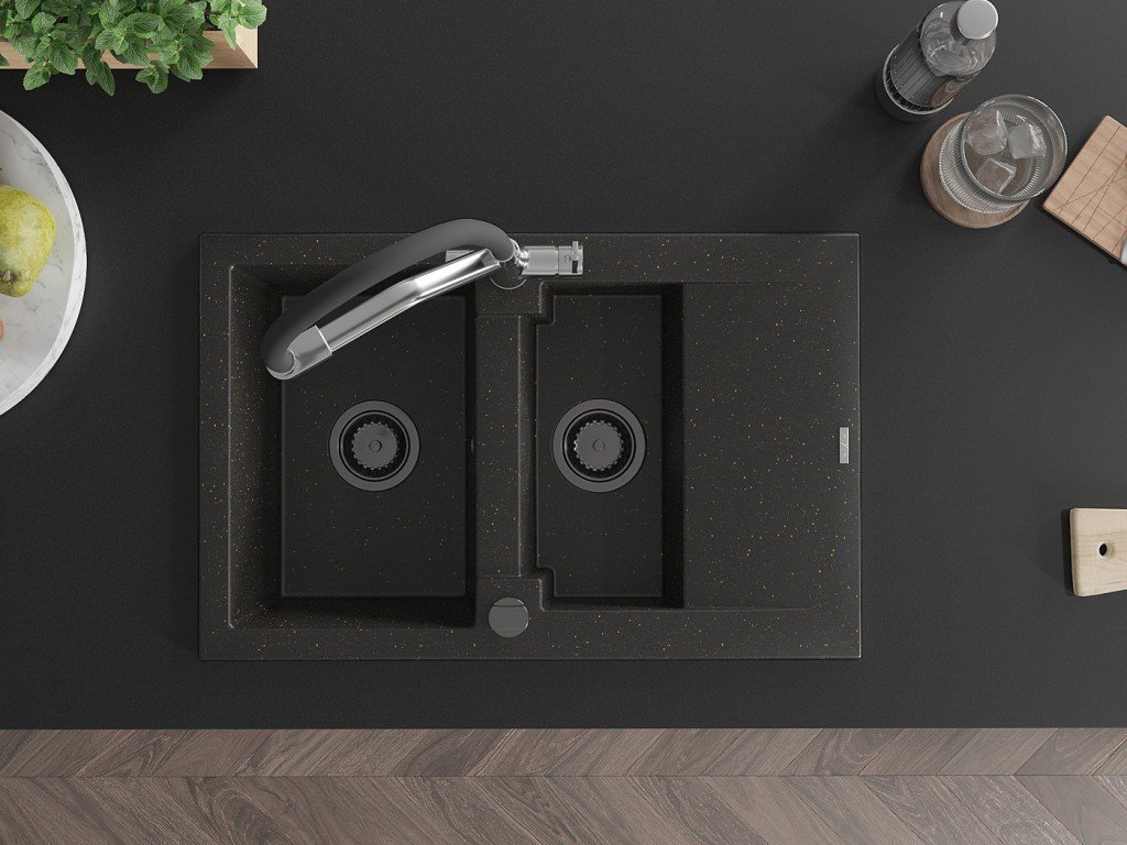 MEXEN/S - Gaspar granitový dřez 1.5 s odkapávačem včetně baterie Duo, černá/zlatá metalik 6507-75-671701-07-B + slevový kód