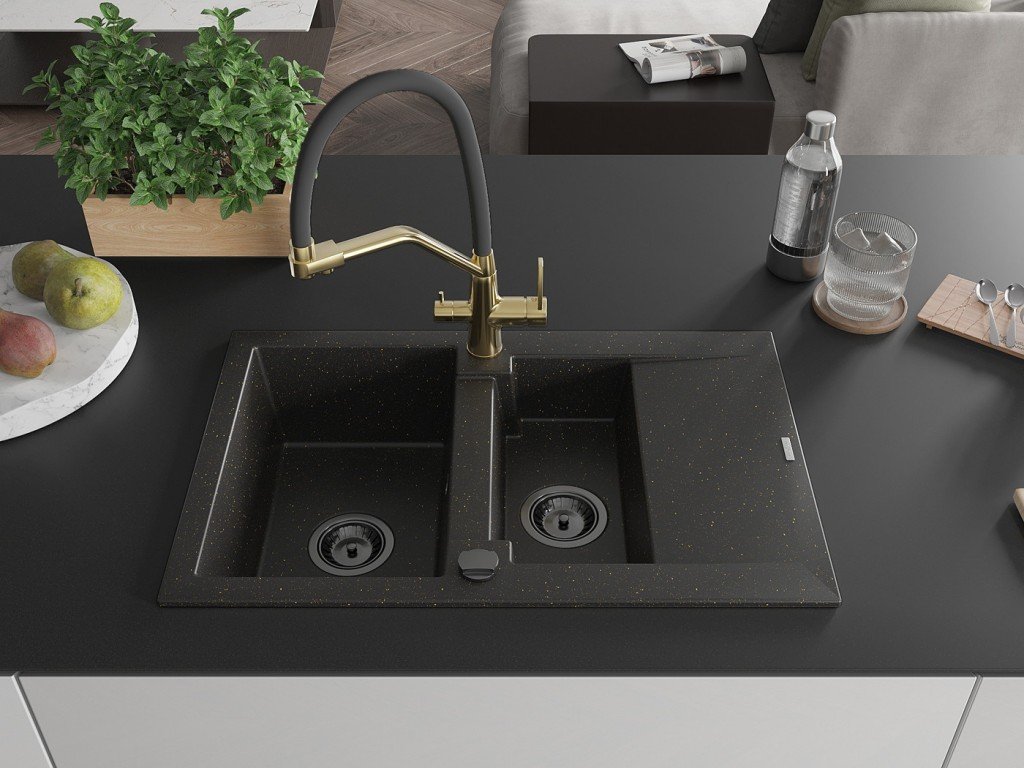 MEXEN/S - Gaspar granitový dřez 1.5 s odkapávačem včetně baterie Duo, černá/zlatá metalik 6507-75-671701-57-B + slevový kód