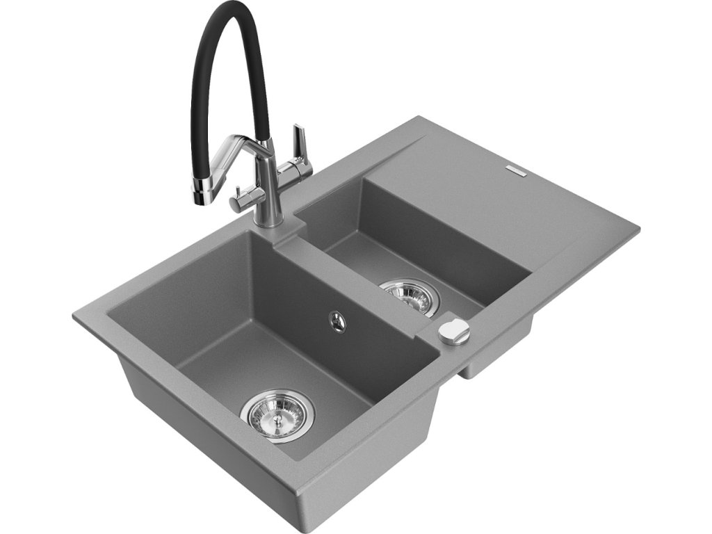 MEXEN/S - Gaspar granitový dřez 1.5 s odkapávačem včetně baterie Duo, šedá 6507-71-671701-07 + slevový kód