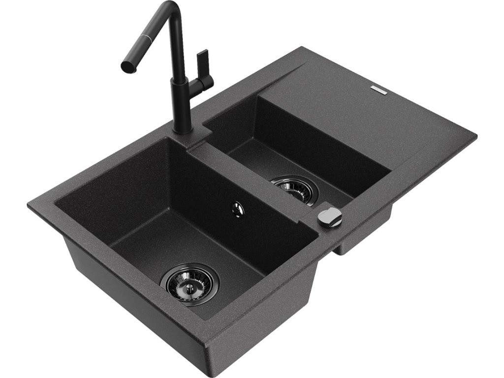 MEXEN/S - Gaspar granitový dřez 1.5 s odkapávačem včetně baterie Flora, černá kropenatá 6507-76-670401-70-B