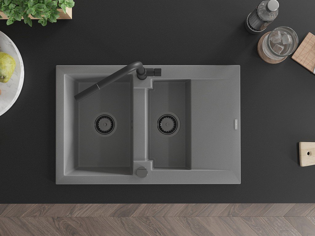 MEXEN/S - Gaspar granitový dřez 1.5 s odkapávačem včetně baterie Flora, šedá 6507-71-670401-70-B + slevový kód