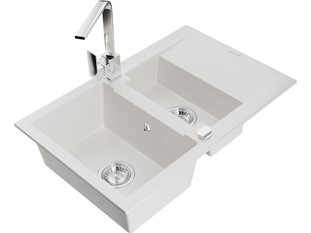MEXEN/S - Gaspar granitový dřez 1.5 s odkapávačem včetně baterie Rita, bílá 6507-20-670300-00