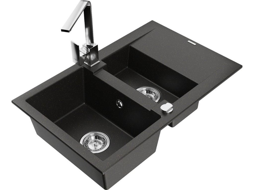 Granitový vestavný dřez s odkapem 77x44 cm v černé barvě kombinuje moderní design a vysokou odolnost. Vyroben z kvalitního granitového kompozitu, který odolává poškrábání,...