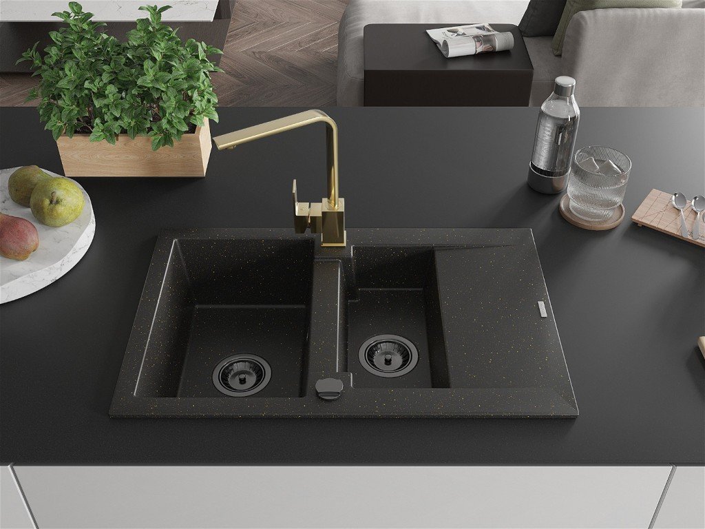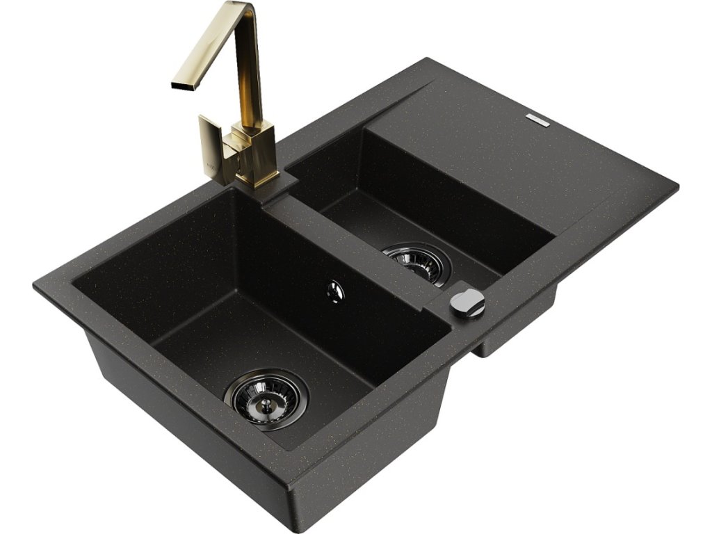 MEXEN/S - Hektor granitový dřez 2-bowl 800 x 480 mm je špičkovou volbou pro každou moderní kuchyni. Jeho elegantní design v kombinaci se šedou barvou a zlatým sifonem ho dělá...