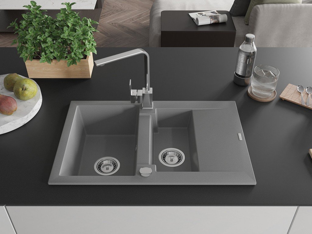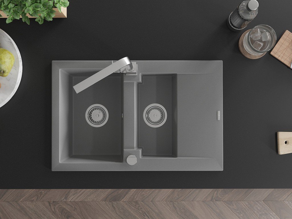 Granitový vestavný dřez s odkapem 77x44 cm v černé barvě kombinuje moderní design a vysokou odolnost. Vyroben z kvalitního granitového kompozitu, který odolává poškrábání,...