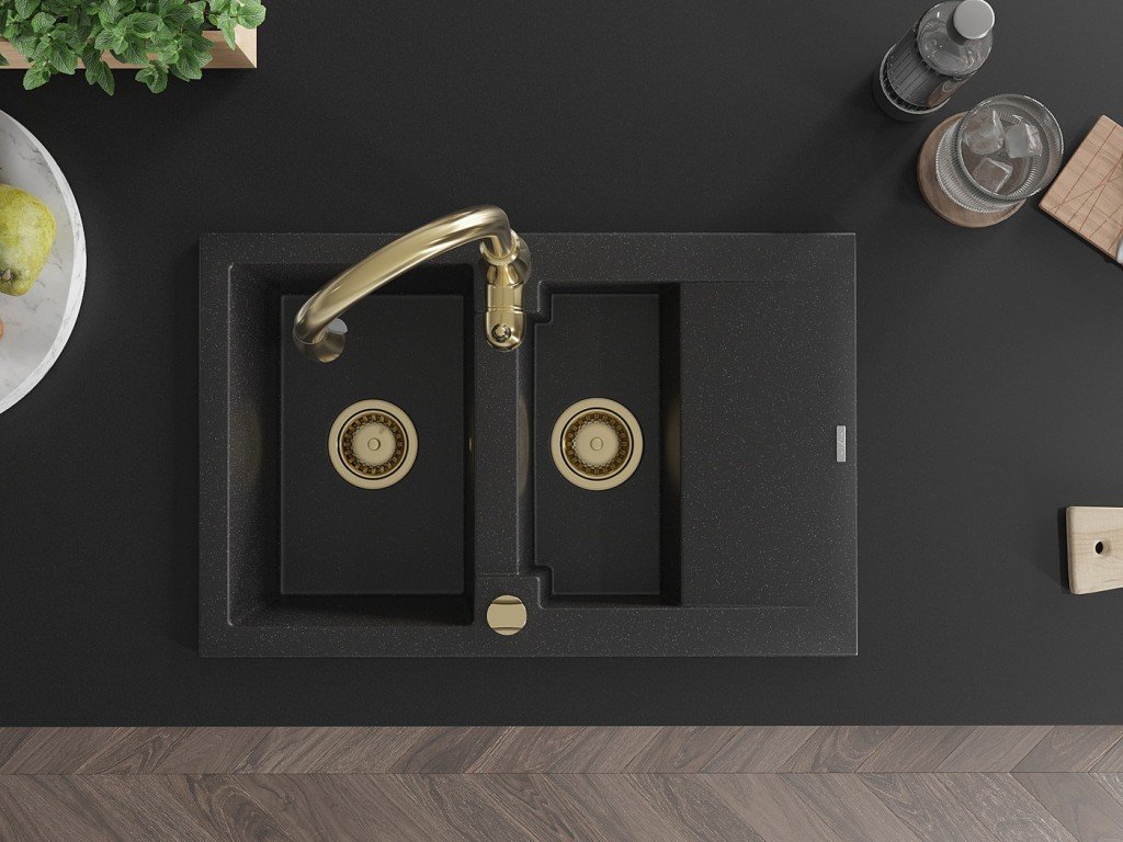 Granitový vestavný dřez s odkapem 77x44 cm v černé barvě kombinuje moderní design a vysokou odolnost. Vyroben z kvalitního granitového kompozitu, který odolává poškrábání,...