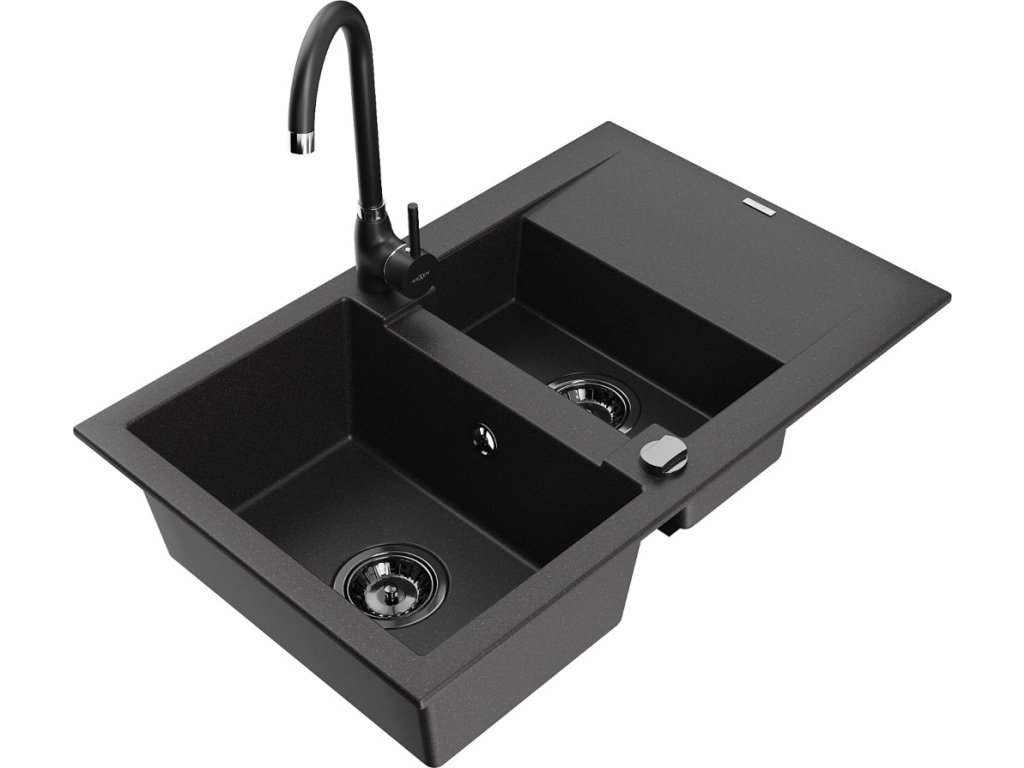 MEXEN/S - Gaspar granitový dřez 1.5 s odkapávačem včetně baterie Telma, černá 6507-77-670200-70-B