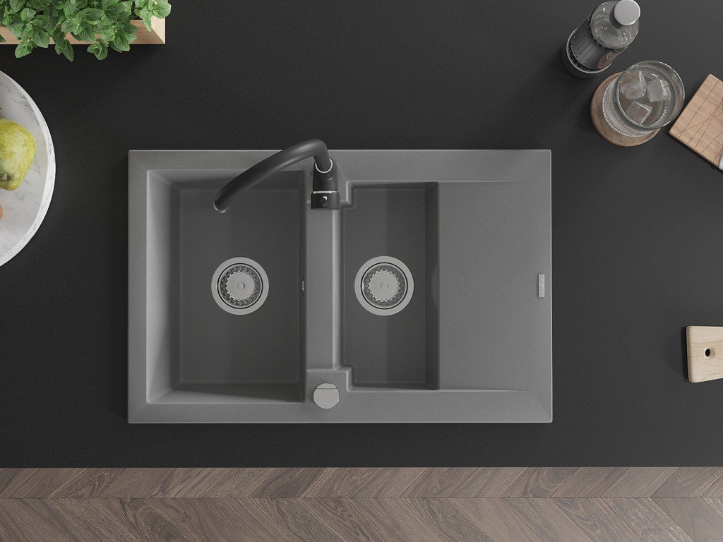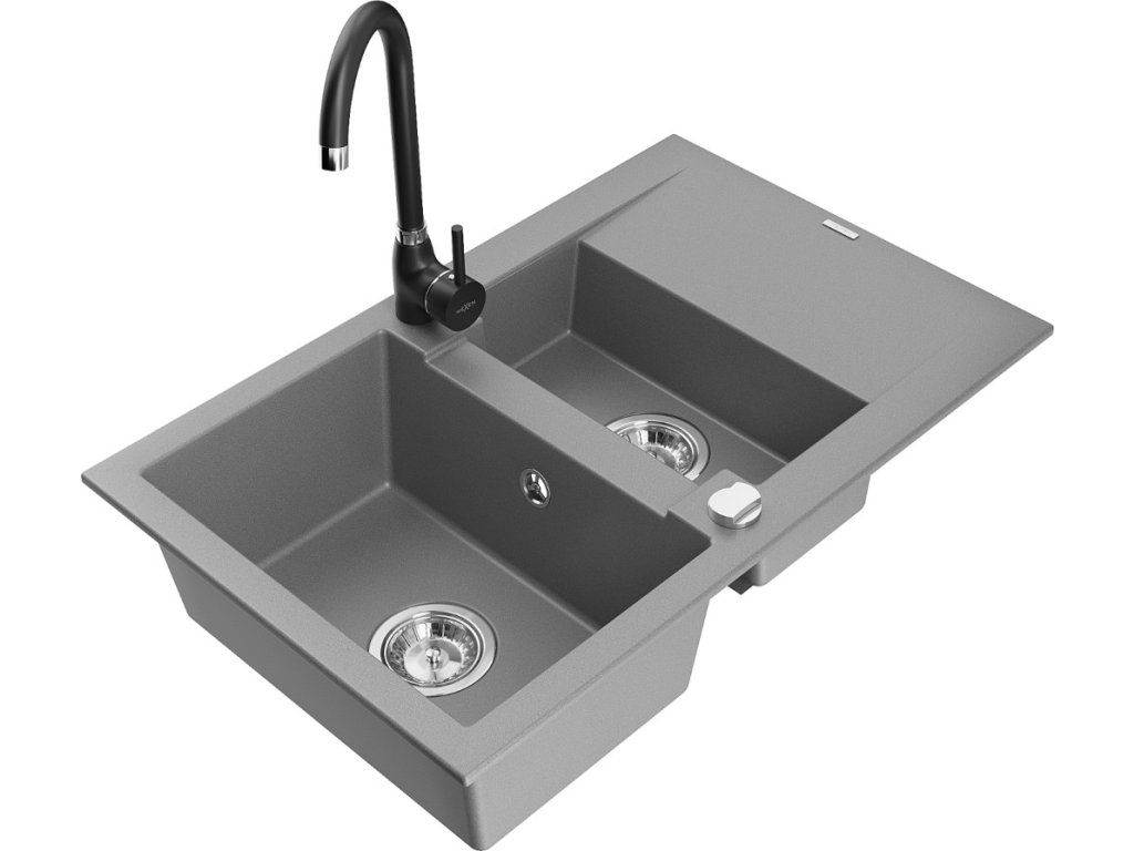 MEXEN/S - Gaspar granitový dřez 1.5 s odkapávačem včetně baterie Telma, šedá 6507-71-670200-70