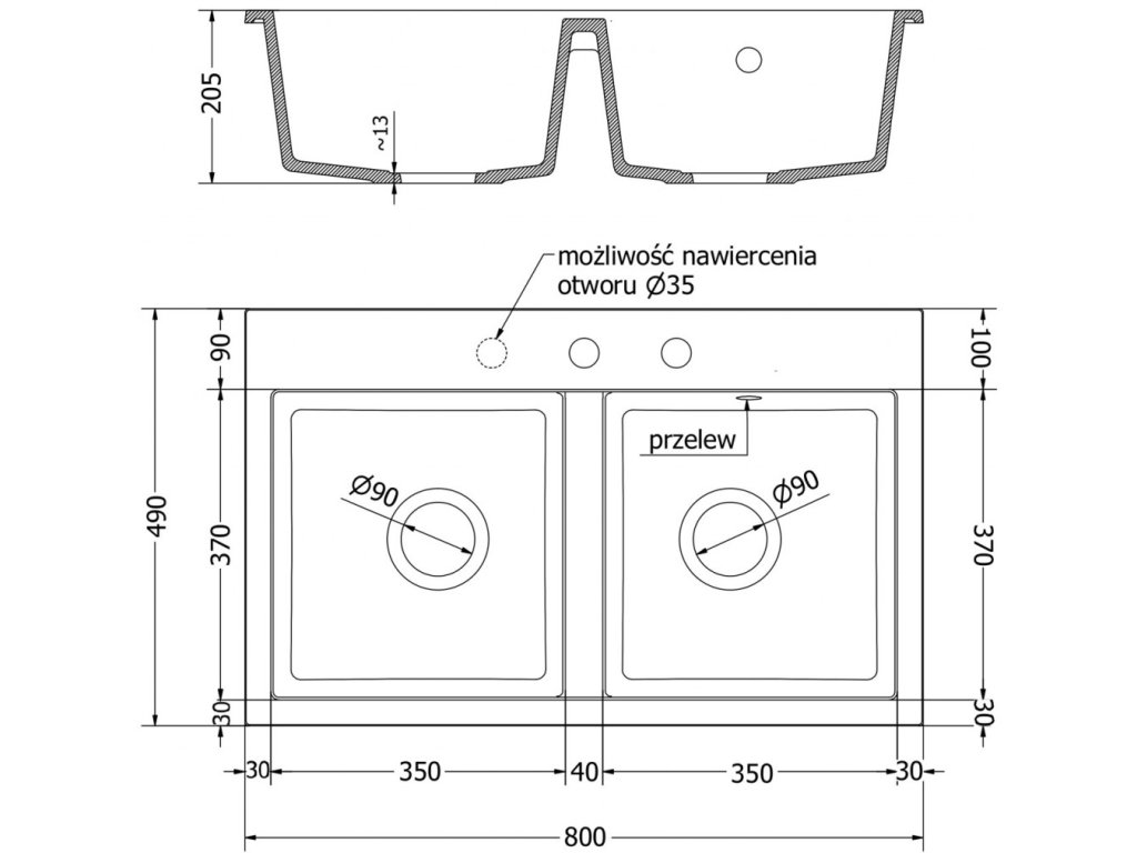 Průměr odtoku: ø90 mm
