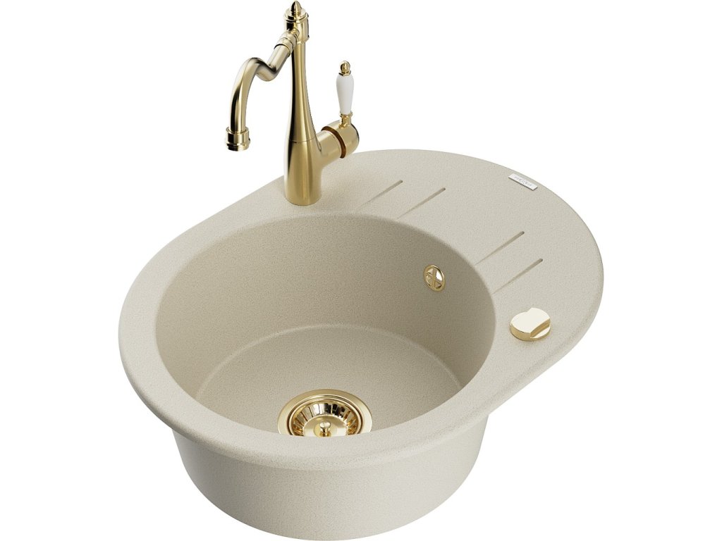 MEXEN/S - Kevin granitový dřez 1-miska s odkapávačem včetně baterie Carla, béžová 6517-69-670700-50