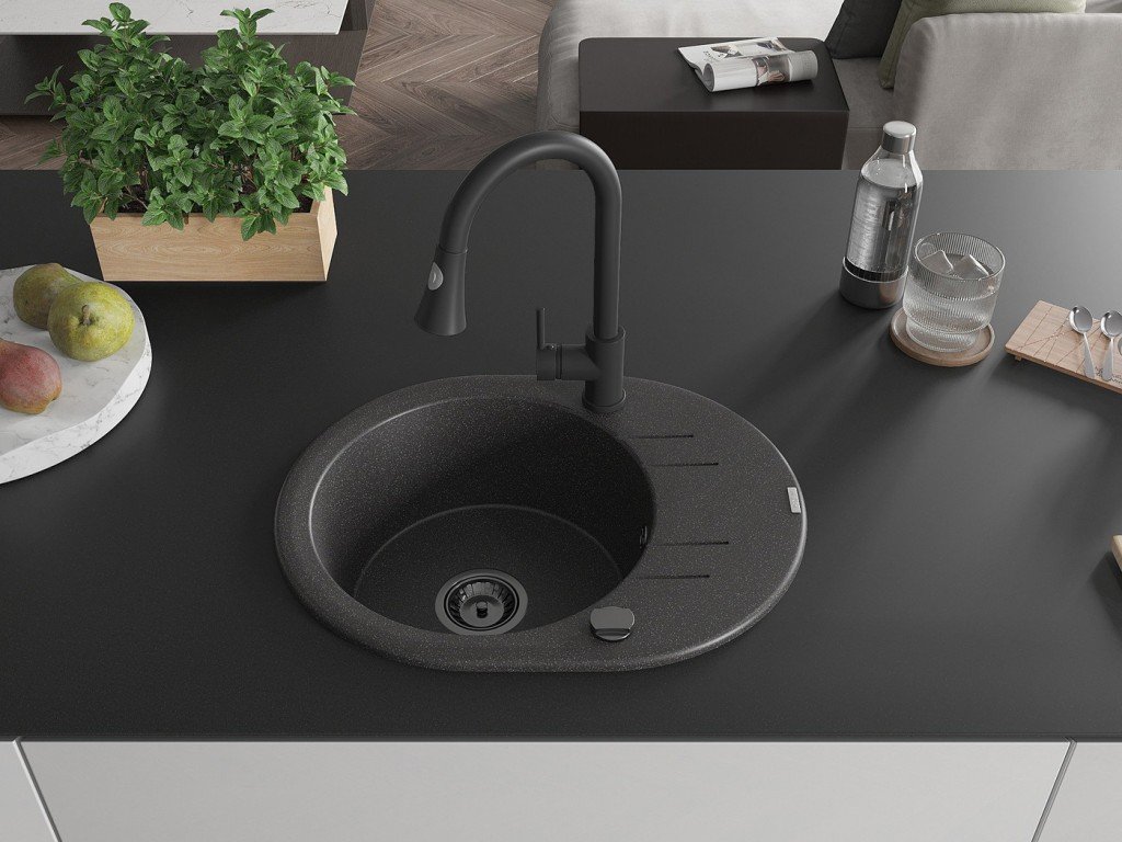 Granitový vestavný dřez s odkapem 77x44 cm v černé barvě kombinuje moderní design a vysokou odolnost. Vyroben z kvalitního granitového kompozitu, který odolává poškrábání,...