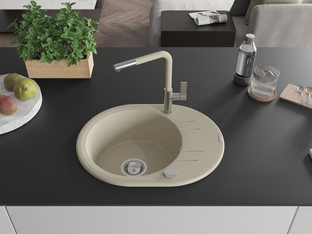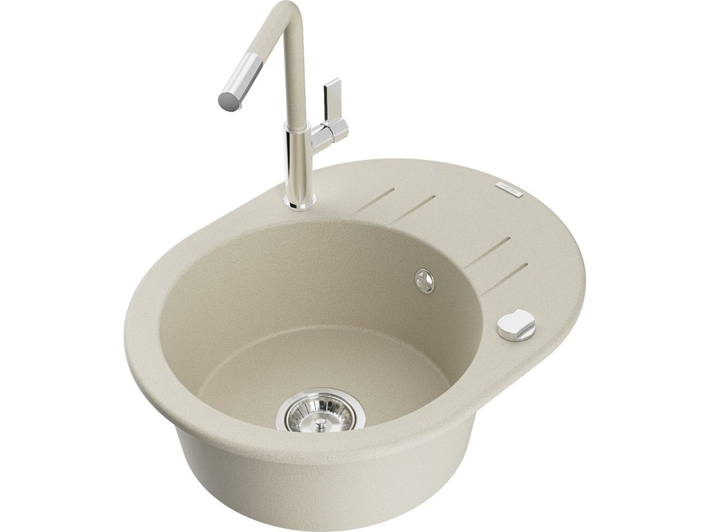 .Potřebujete kvalitní a stylový dřez do vaší kuchyně? Představujeme vám náš nejnovější hit - MEXEN/S Pablo granitový dřez 1 s odkapávačem včetně baterie Flora, béžová...