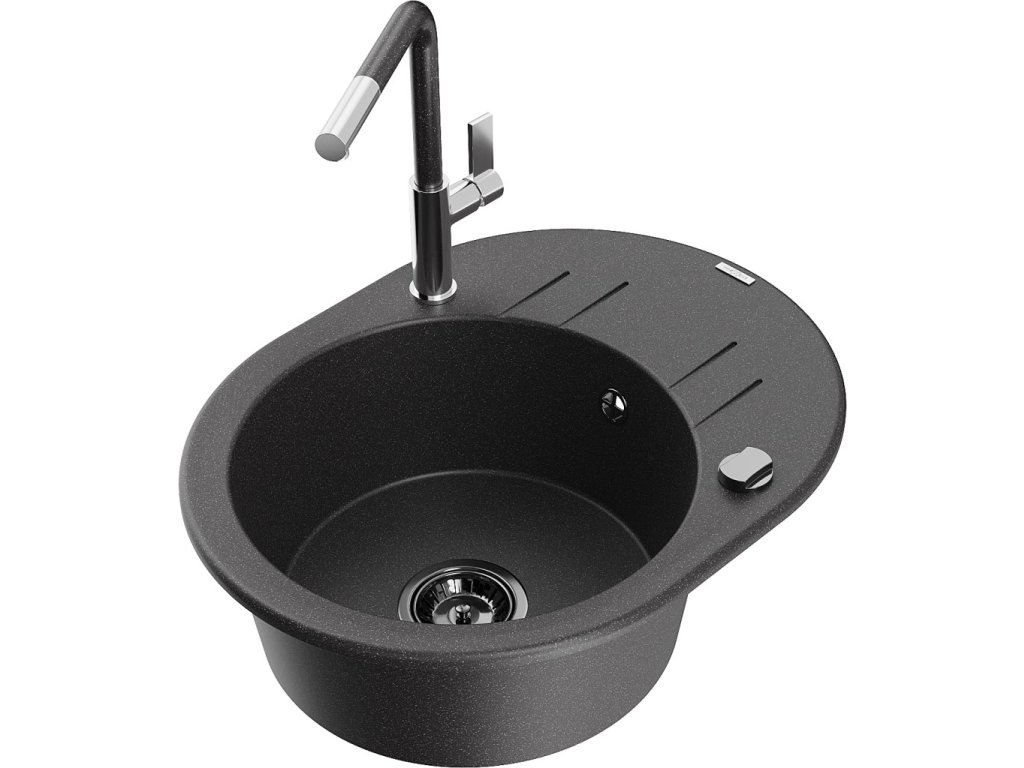 MEXEN/S - Kevin granitový dřez 1-miska s odkapávačem včetně baterie Flora, černá kropenatá 6517-76-670401-08-B