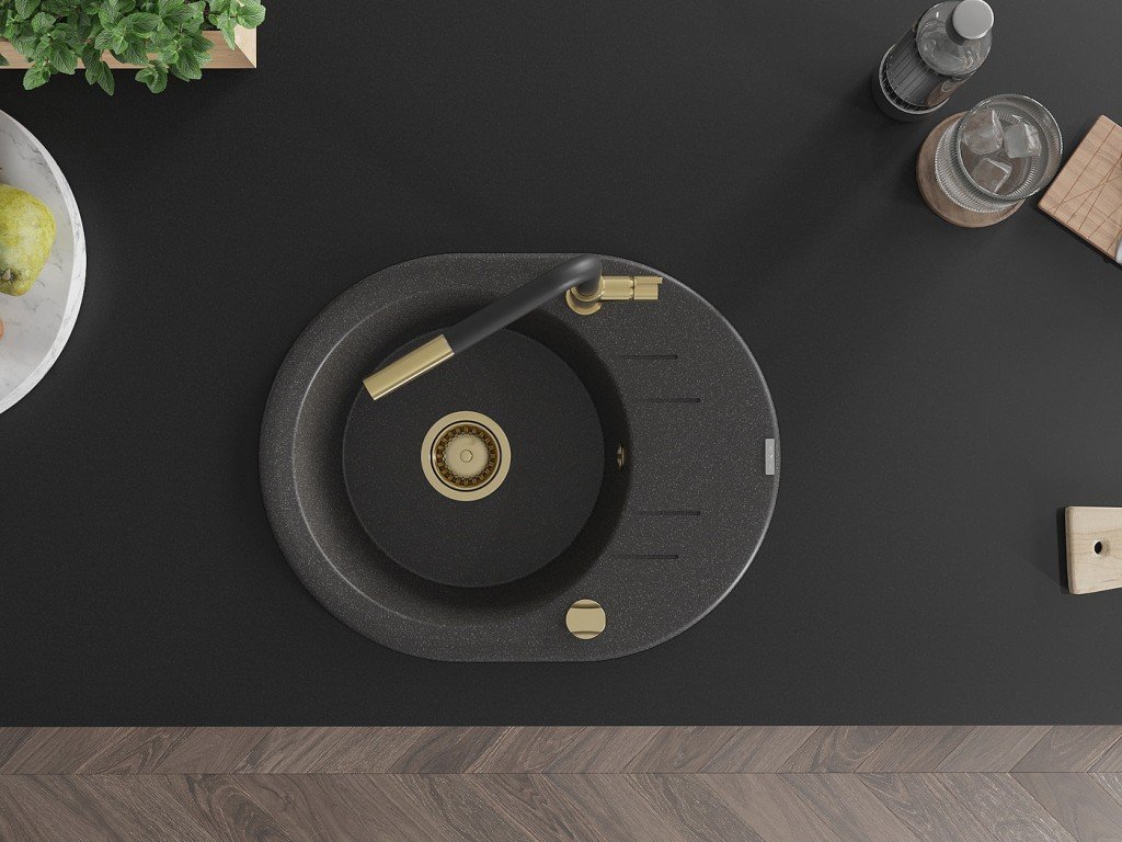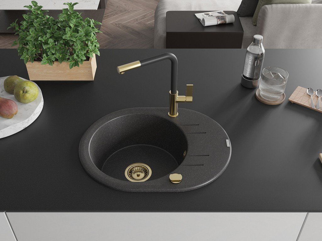 Granitový vestavný dřez s odkapem 77x44 cm v černé barvě kombinuje moderní design a vysokou odolnost. Vyroben z kvalitního granitového kompozitu, který odolává poškrábání,...