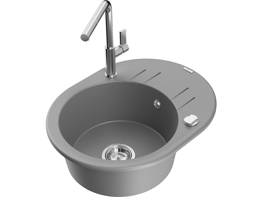 MEXEN/S - Kevin granitový dřez 1-miska s odkapávačem včetně baterie Flora, šedá 6517-71-670401-00