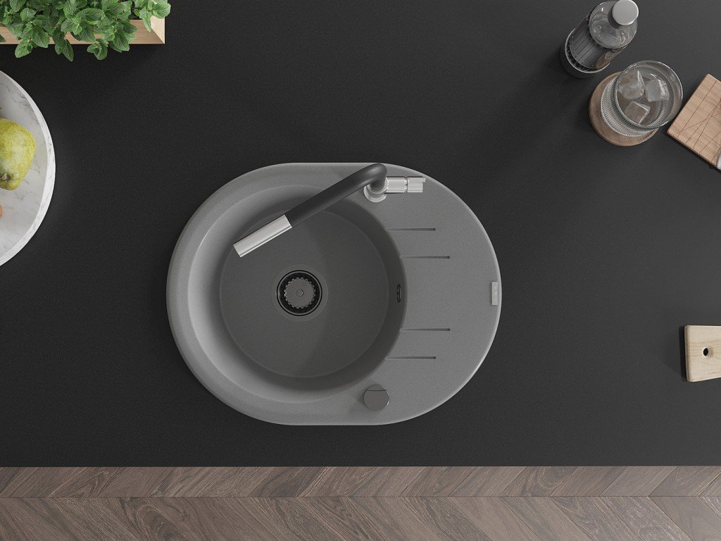 MEXEN/S - Kevin granitový dřez 1-miska s odkapávačem včetně baterie Flora, šedá 6517-71-670401-07-B