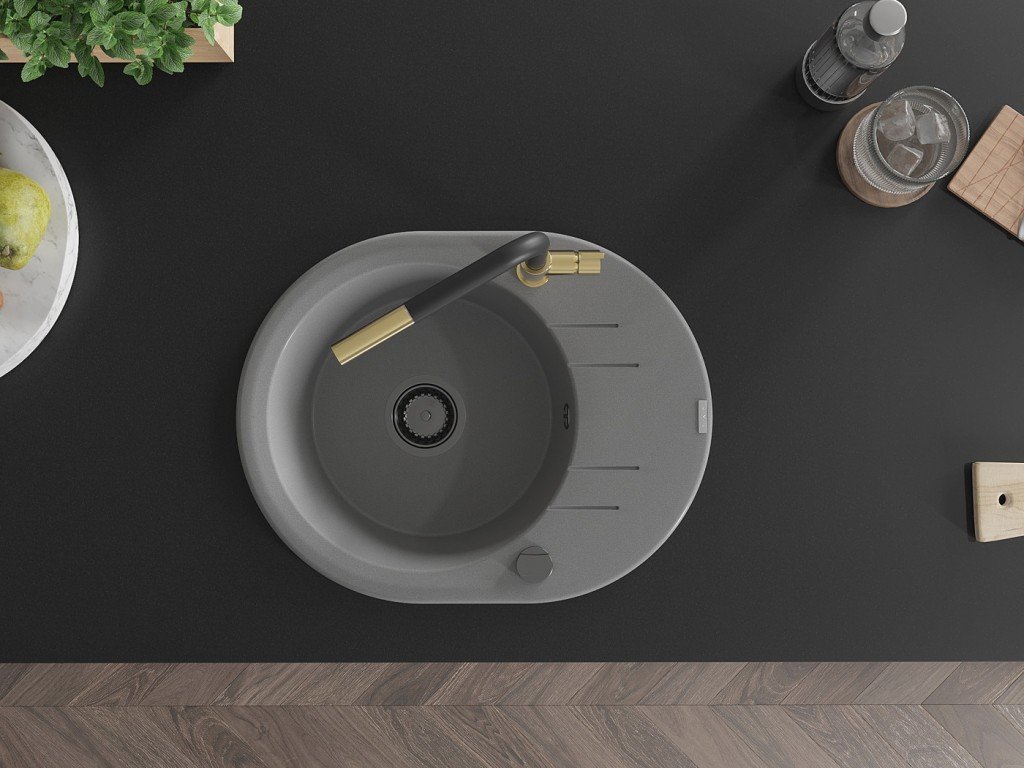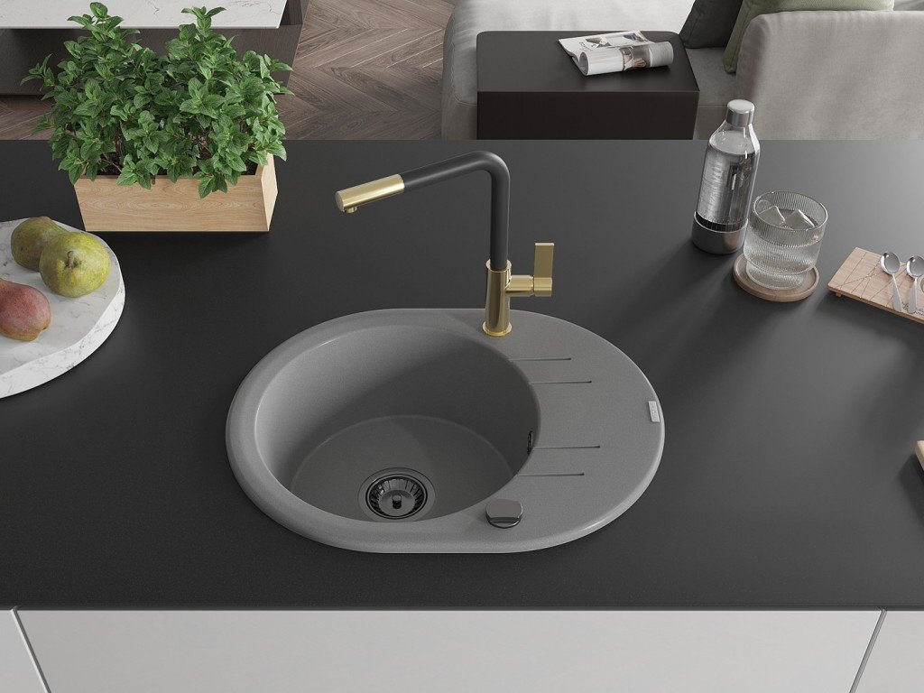 MEXEN/S - Kevin granitový dřez 1-miska s odkapávačem včetně baterie Flora, šedá 6517-71-670401-57-B + slevový kód