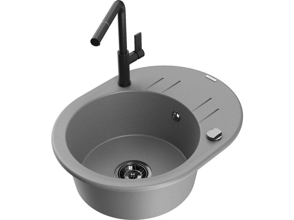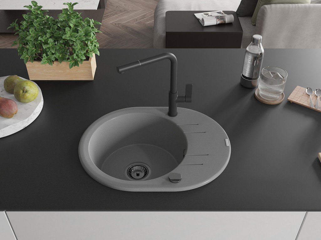 MEXEN/S - Kevin granitový dřez 1-miska s odkapávačem včetně baterie Flora, šedá 6517-71-670401-70-B + slevový kód