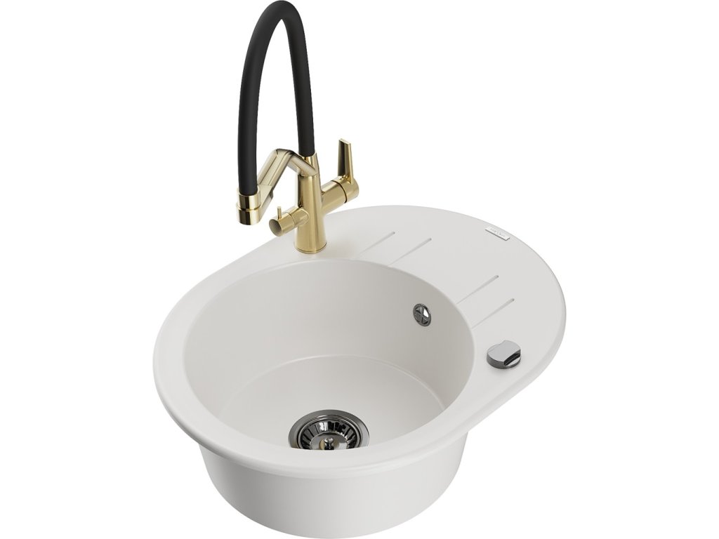 MEXEN/S - Kevin granitový dřez 1-miska včetně baterie Duo, bílá 6517-20-671701-57-B