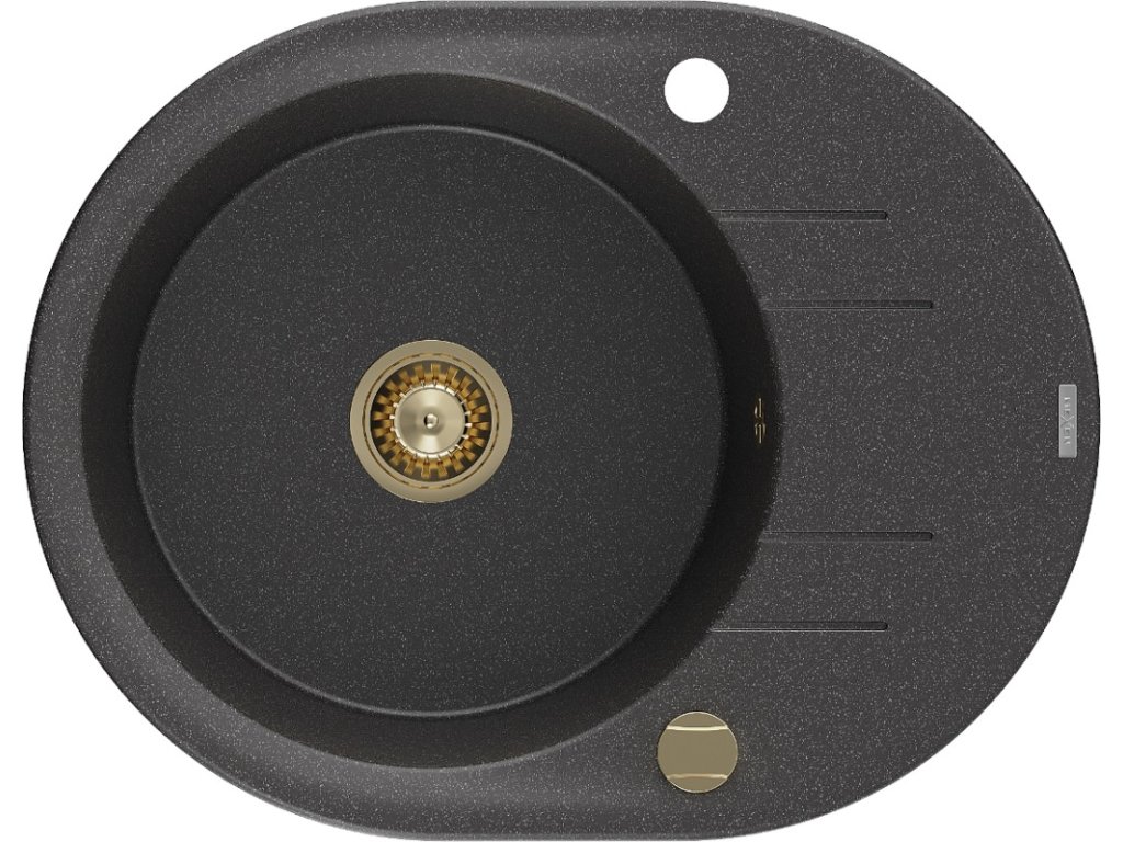 MEXEN/S - Kevin granitový dřez 1 s odkapávačem 586x458 mm, černá kropenatá, + zlatý sifon 6517581005-76-G