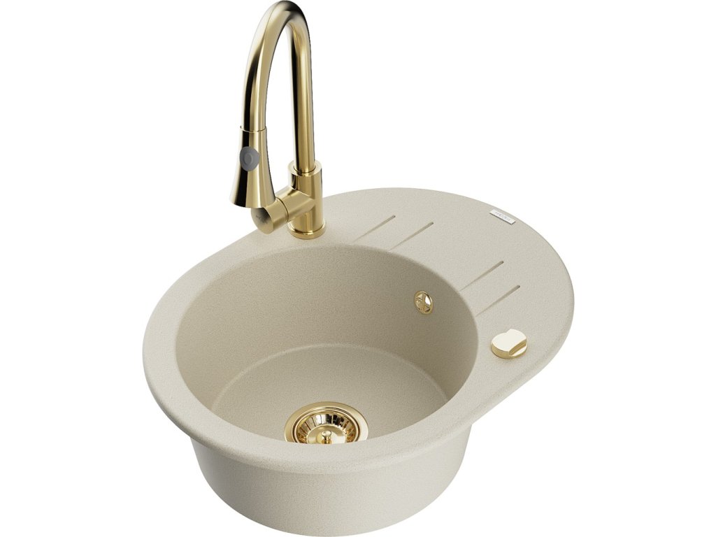 MEXEN/S - Kevin granitový dřez 1 s odkapávačem včetně baterie Elia, béžová 6517-69-670101-50