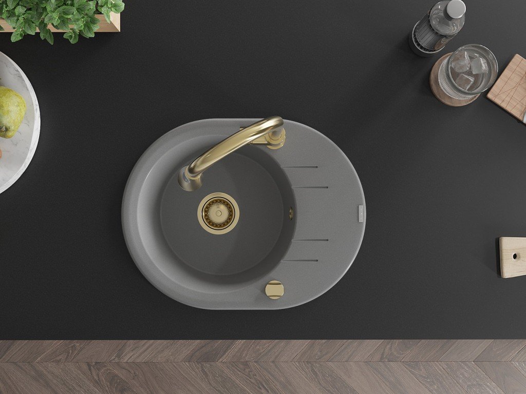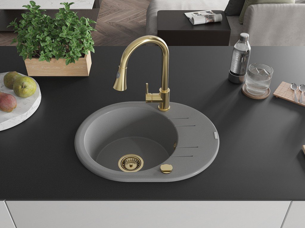 MEXEN/S - Kevin granitový dřez 1 s odkapávačem včetně baterie Elia, šedá 6517-71-670101-50