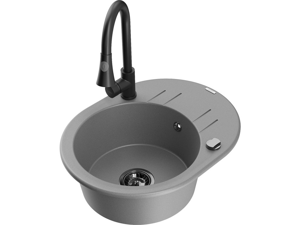 MEXEN/S - Kevin granitový dřez 1 s odkapávačem včetně baterie Elia, šedá 6517-71-670101-70-B
