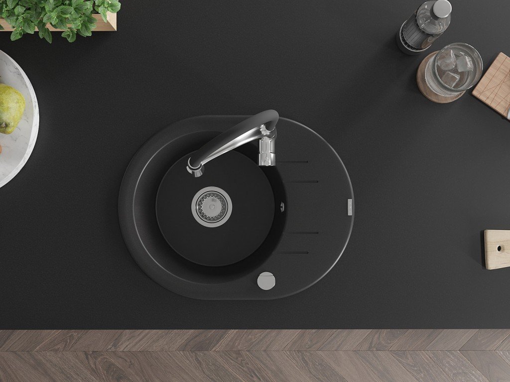 Granitový vestavný dřez s odkapem 77x44 cm v černé barvě kombinuje moderní design a vysokou odolnost. Vyroben z kvalitního granitového kompozitu, který odolává poškrábání,...