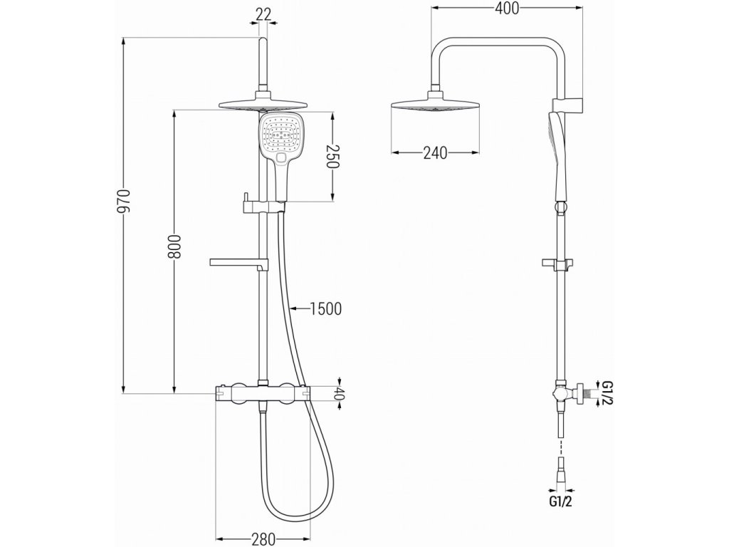 Připojení: G3 / 4 "(nahoře) a G1 / 2" (dole)