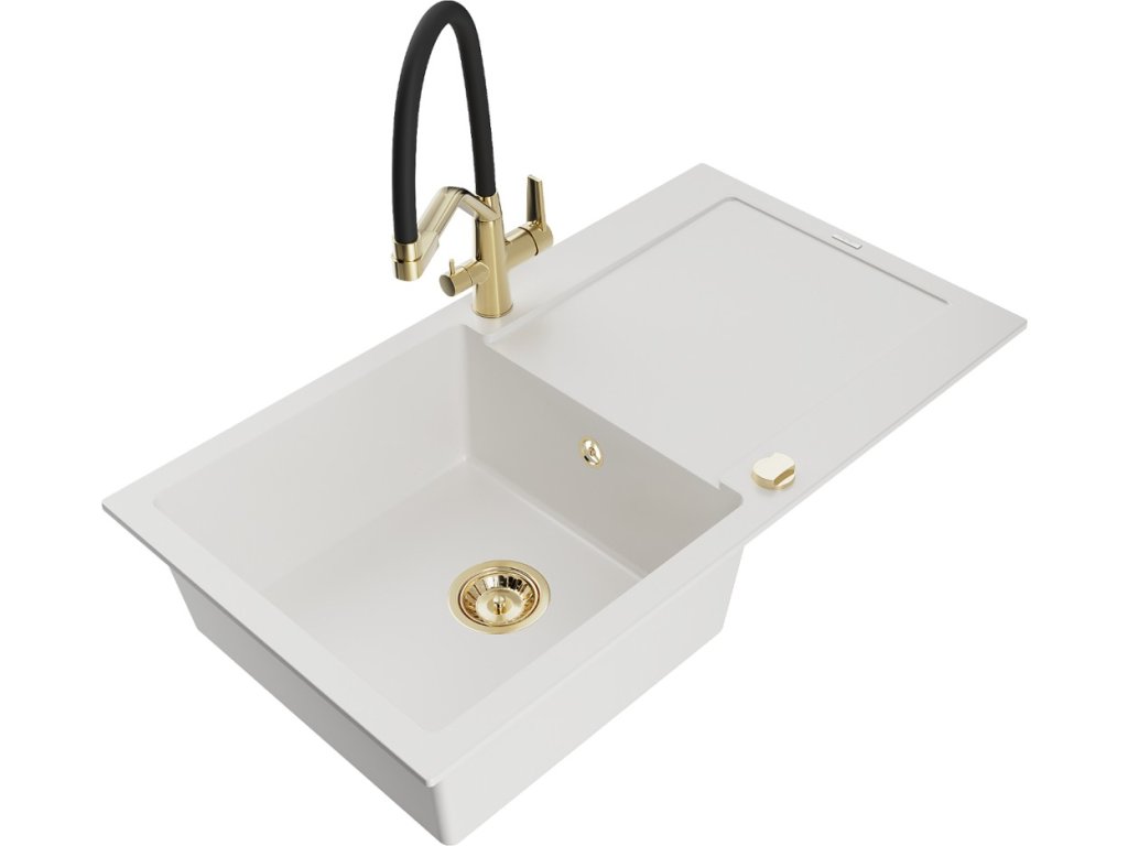 MEXEN/S - Leo granitový dřez 1-miska s odkapávačem včetně baterie Duo, bílá 6501-20-671701-57-G
