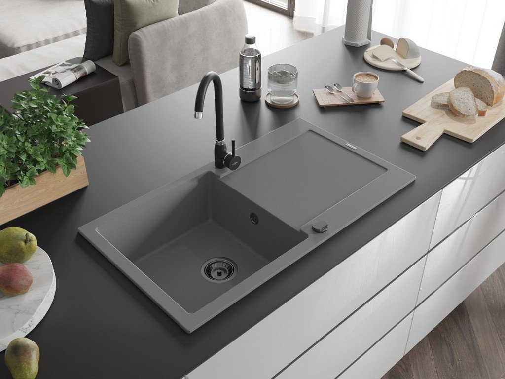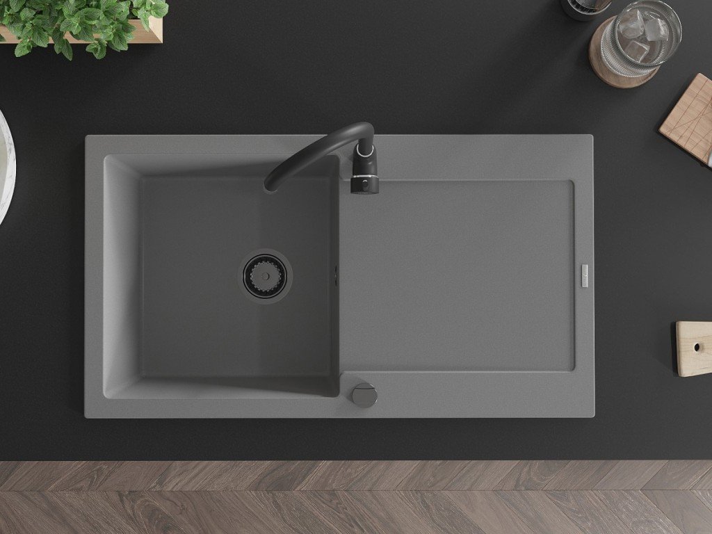 MEXEN/S - Leo granitový dřez 1 s odkapávačem 900x500 mm, šedá,+ sifon grafit 6501901010-71-B