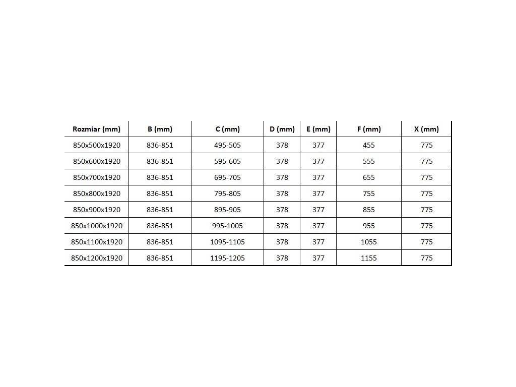 Velikost: 85x70 cm (dveře 85 cm, stěna 70 cm)
