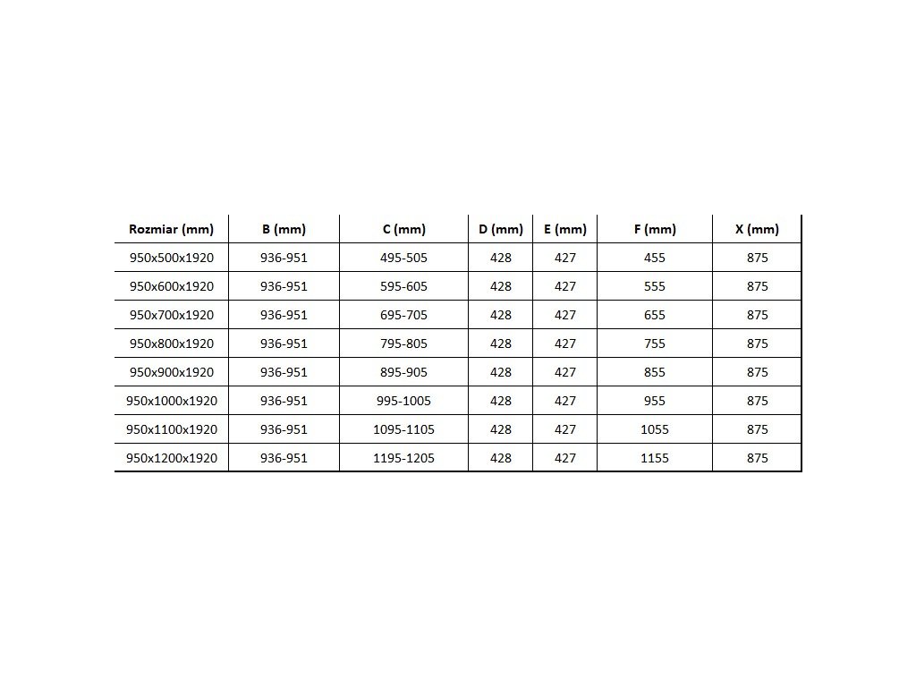 Rozměr: 95x70 cm (dveře 95 cm, stěna 70 cm)