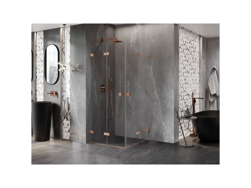 MEXEN/S - Lunar-F Duo sprchový kout skládací dveře 85 x 85, transparent, měď kartáčovaná 836-085L-085P-65-00